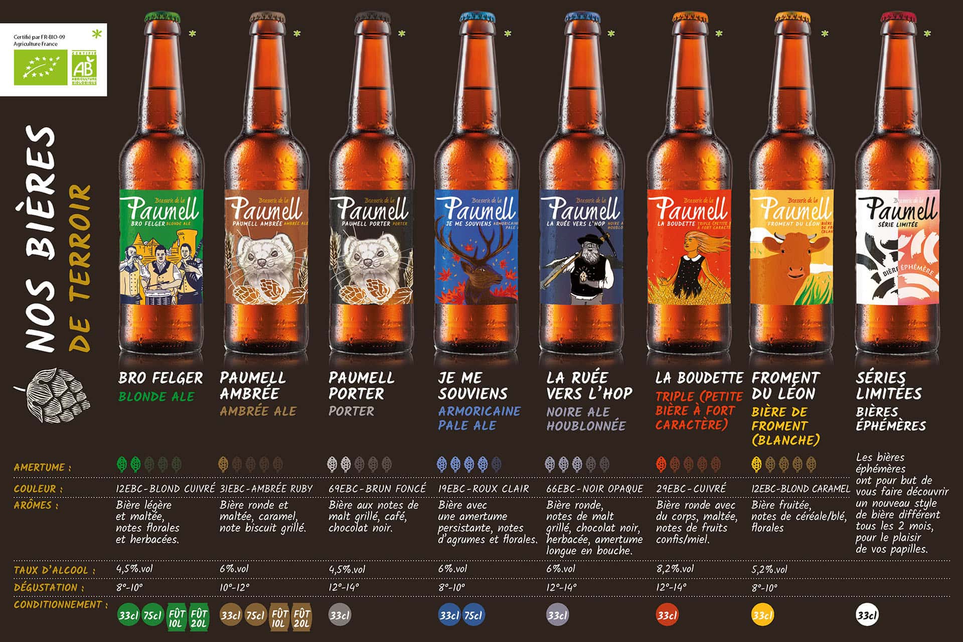 La Brasserie de la Paumell revendique une forte identité bretonne. Elle vous propose des bières aux noms bretons ou gallos, les langues de la Bretagne. Le nom « Paumell » signifie d’ailleurs orge en gallo, une céréale essentielle à la fabrication de la bière.